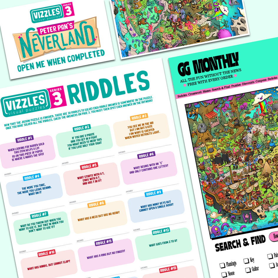 This is more than just a 1000-piece puzzle — it’s a search-and-find adventure. Once you complete the scene, the real fun begins: open the secret envelope and solve 30 hidden riddles by spotting clues woven into the artwork. It’s the perfect mix of puzzling, play, and problem-solving.