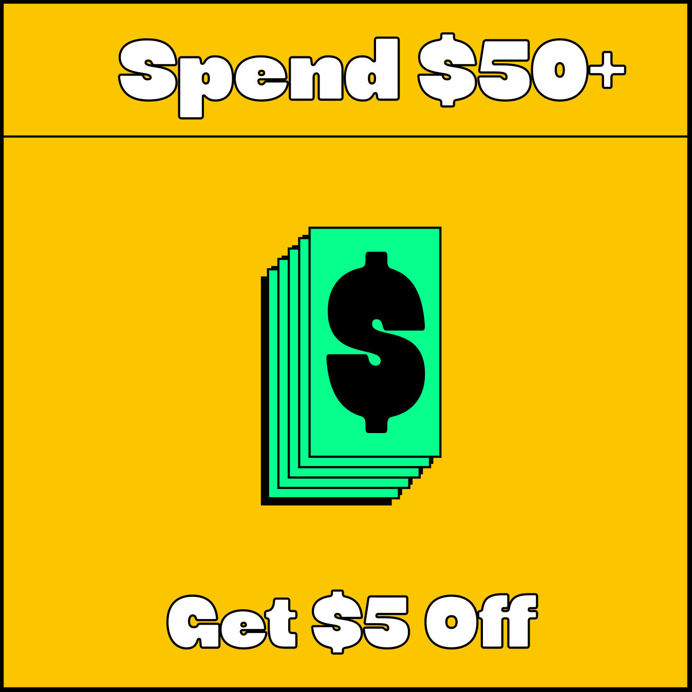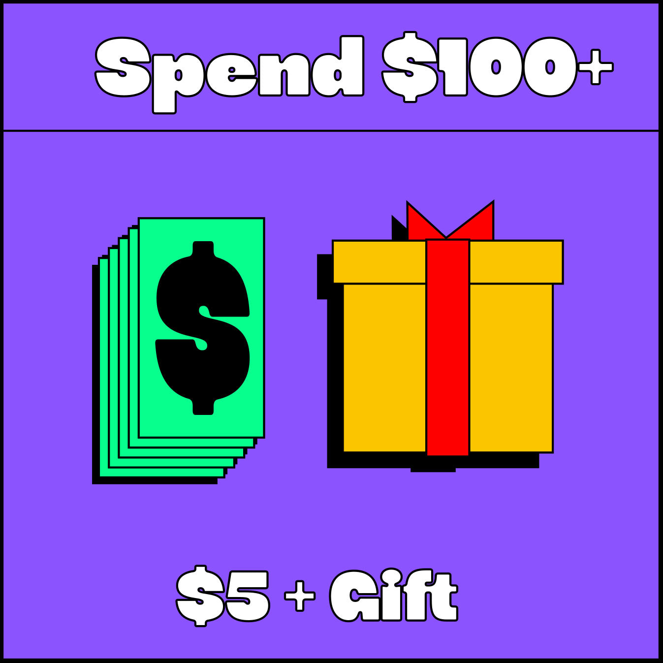 | Scroll left to right | Spend $50+ | Spend $100+ | Spend $150+ |