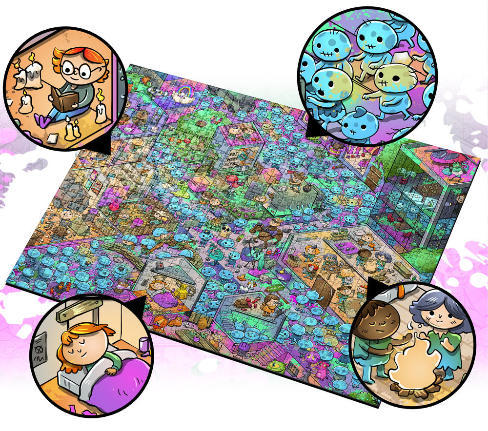 Our wondrously whimsical puzzles are illustrated by Samuel Milham, an Australian artist who creates all of the amazing products on our site. We know you'll enjoy diving into each little world that he builds with each new title.
